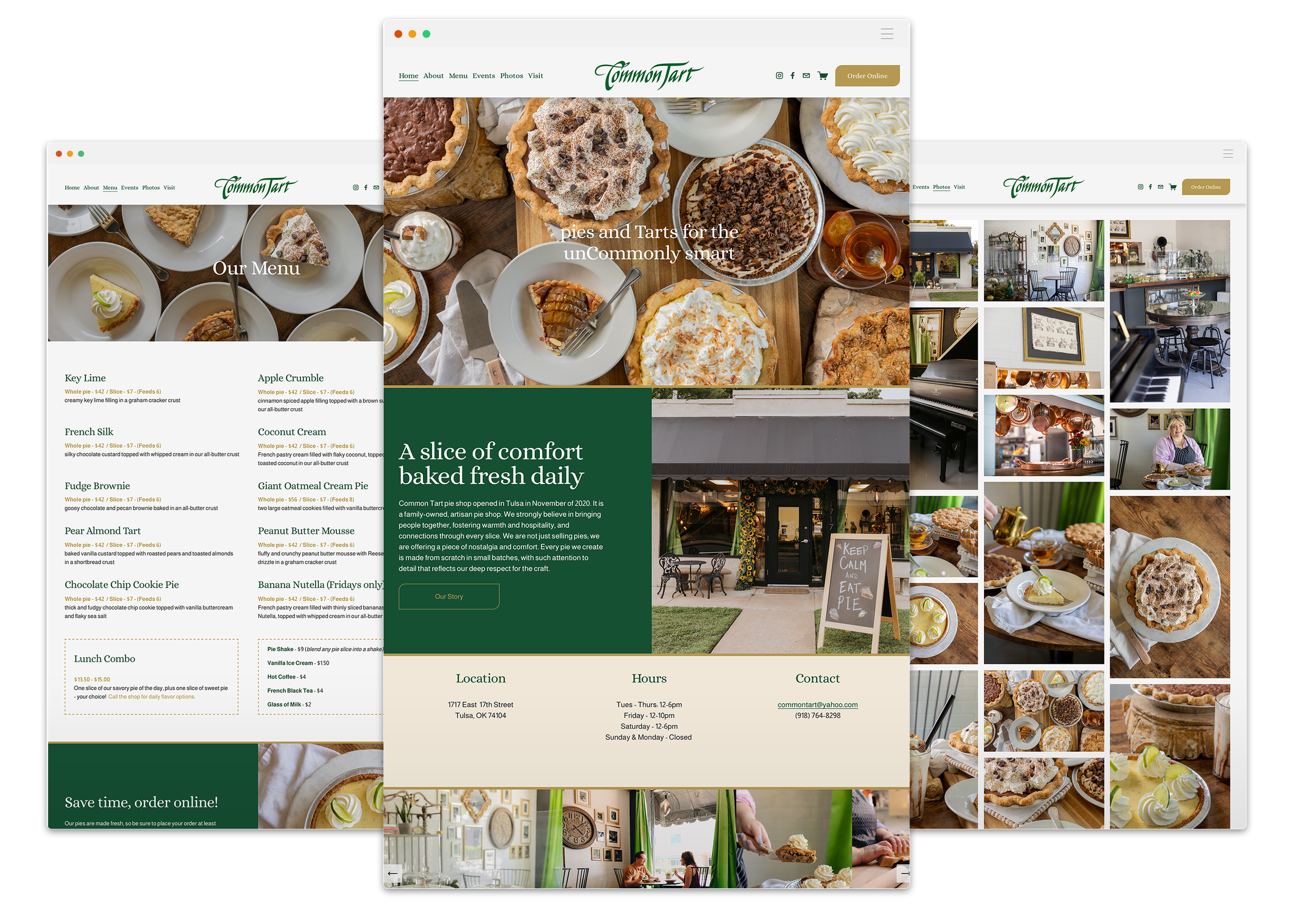 We recently teamed up with Common Tart, an adorable pie shop in midtown Tulsa, to give their website a full refresh. We overhauled the design for a clean, modern look and added a brand new set of photos that captured the warmth and charm of their space.