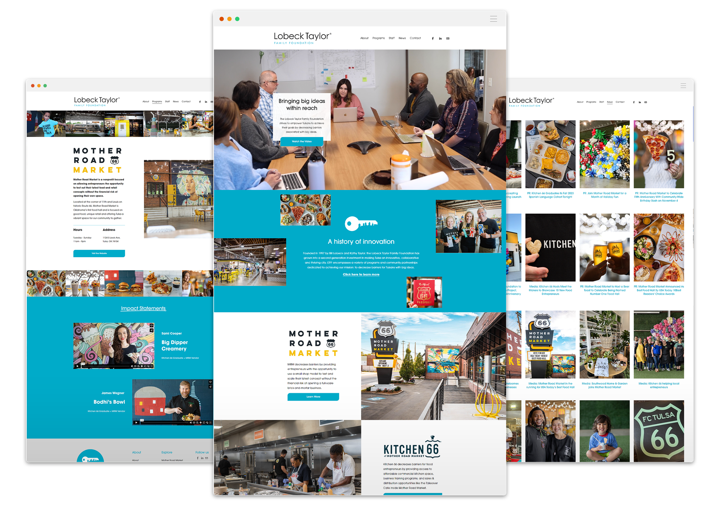 We’ve worked with the Lobeck Taylor Family Foundation and their programs, Mother Road Market and Kitchen66 for several years now. Valerie is their primary photographer/videographer for all their needs, and we are redesigning each of their websites as well as training the organization to manage and maintain entirely in house.